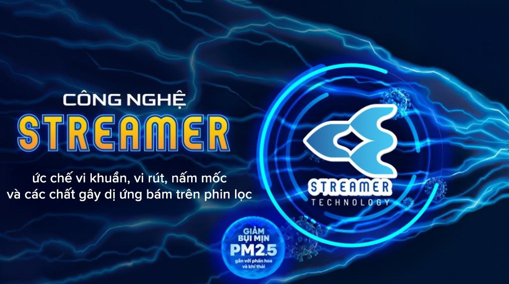 - Chức năng chống ẩm mốc cùng công nghệ Streamer hoạt động theo cơ chế là trong khi Streamer vô hiệu hóa các chất có hại như nấm mốc, virus, chất gây dị ứng thì máy sẽ tự động chạy ở chế độ quạt trong 1 tiếng khi chức năng làm lạnh, chế độ khử ẩm ngừng hoặc tắt. Từ đó giúp làm khô bên trong dàn lạnh, hạn chế nấm mốc, mùi hôi phát sinh để không khí mát mẻ, trong lành, tăng tuổi thọ cho dàn lạnh.