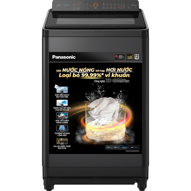 - Panasonic NA-FD115V3BV là dòng máy giặt cửa trên, lồng đứng, được thiết kế gọn gàng nhưng vẫn toát lên vẻ chắc chắn. Kiểu máy này phù hợp với không gian giặt mở như sân sau, ban công hoặc nhà giặt riêng, dễ thao tác cho cả người lớn tuổi.