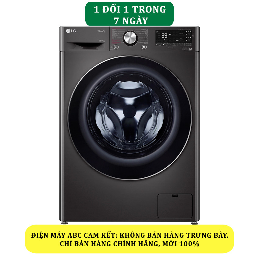 - Máy giặt LG này có khối lượng giặt tối đa 11 kg, sấy 7 kg phù hợp với gia đình trên 7 thành viên, hoặc gia đình ít thành viên hơn nhưng nhu cầu giặt giũ cao, tiết kiệm thời gian phơi đồ.